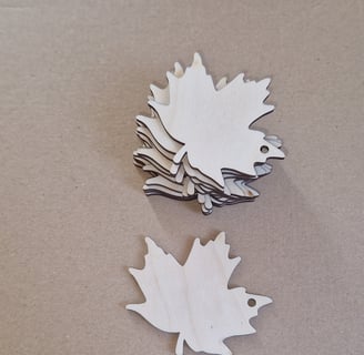Ruošinis klevo lapas D~70mm Fanera storis 3 mm.